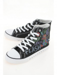 Трендовые женские кеды из черной джинсы украшены принтом с надписями в уличном стиле. Подкладка из текстиля на хлопковой основе долговечна и легко пропускает воздух. Модель имеет прорезиненный контрастный нос и дополнена прочной подошвой вулканайз, которая не пропускает влагу извне
